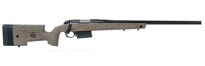 The HMR or Hunting and Match Rifle features an integrated mini-chassis molded into the stock for repeatable accuracy. The stock also features an adjustable cheekpiece and length of pull adjustments. The Bergara #5 taper barrel is threaded, includes a thread protector, and is fully free floated in the HMR stock to achieve optimal precision. A 5-round AICS detachable magazine is standard and QD flush cups are included in the stock to allow for easy attachment and removal of slings. This rifle is chambered for .22-250 Rem, .300 Win Mag, .308 Win, .450 Bushmaster, 6mm Creedmoor, 6.5 Creedmoor, and 7mm Rem Mag.