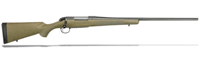 The Bergara Hunter rifle features a molded green fiber glass synthetic stock with tan and black specs for a tasteful camo look. A SoftTouch coating gives the stock a soft, tacky feel that makes it easy to grip even in harsh winter hunt. This rifle is chambered for .22-250 Rem, .243 Win, .270 Win, .300 Win Mag, .30-06 Springfield, .308 Win, 6.5 Creedmoor, 7mm Rem Mag, and 7mm-08.