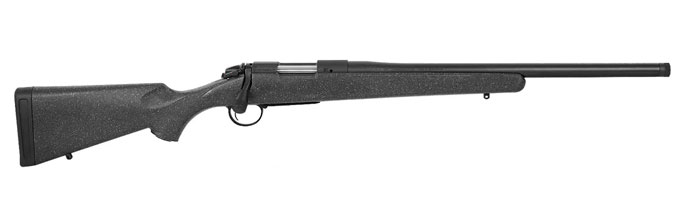 The Bergara Ridge Rifle also features a molded fiber glass synthetic stock but is dark gray with specs of white and black. The Bergara barrel on this rifle is threaded, has a #5 taper, and is also available as a Special Purpose Short barrel. A SoftTouch coating gives the stock a soft, tacky feel that makes it easy to grip even in harsh winter hunt. This rifle is chambered for .22-250 Rem, .243 Win, .270 Win, .300 Win Mag, .30-06 Springfield, .308 Win, 6.5 Creedmoor, 7mm Rem Mag, and 7mm-08.