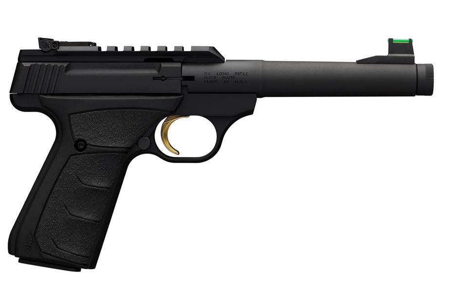 The Buck Mark Plus is now threaded for suppressor! Other features include a tapered bull barrel, single-action, blowback operated, rimfire pistol. Picatinny rail. Pro-Target adjustable sights. Ultragrip FX grips.