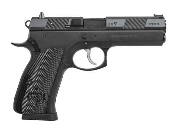 The CZ 97 B is the big-bore brother to the CZ 75 B, the first CZ pistol produced in .45 ACP. It is operationally identical to the 75 B (SA/DA, firing pin block safety and magazine brake). Features include a screw-in barrel bushing, loaded chamber indicator and a double-stack magazine holding 10 rounds.