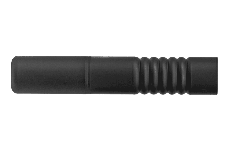 Combining light weight, superb suppression and short installed length, our centerfire reflex cans sport a very distinctive shape. To shave the ounces, each titanium baffle is turned down on a lathe until it possesses just the right amount of material to withstand the pressures of full-auto use. The swirled shape of the internal baffle structure is reflected in its exterior, and each baffle is welded to the next until the stack exhibits a very unique silhouette. Not only does this eliminate extra material that would simply add weight, it also increases surface area for heat dissipation.
