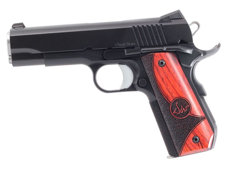 The Guardian combines features of two of Dan Wesson’s most popular models, the Bobtail Commander and the CCO. The new Guardian has an anodized aluminum bobtail frame and an aluminum mainspring housing to help reduce printing when carrying concealed and make it comfortable enough for full-time carry. The Guardian provides a lightweight Commander-sized 1911 in 9mm.