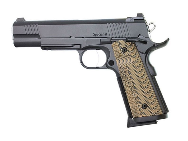 The Specialist was originally developed for police departments who seeked a more reliable and durable 1911 pistol. Offered in a full-size model, the Specialist Stainless sports a bead blasted stainless finish and is chambered in 10mm. Constructed with a forged stainless steel slide, frame with 1913 rail, 25 LPI checkering, ambidextrous thumb safety and G10 VZ Operator II grips round out this package.