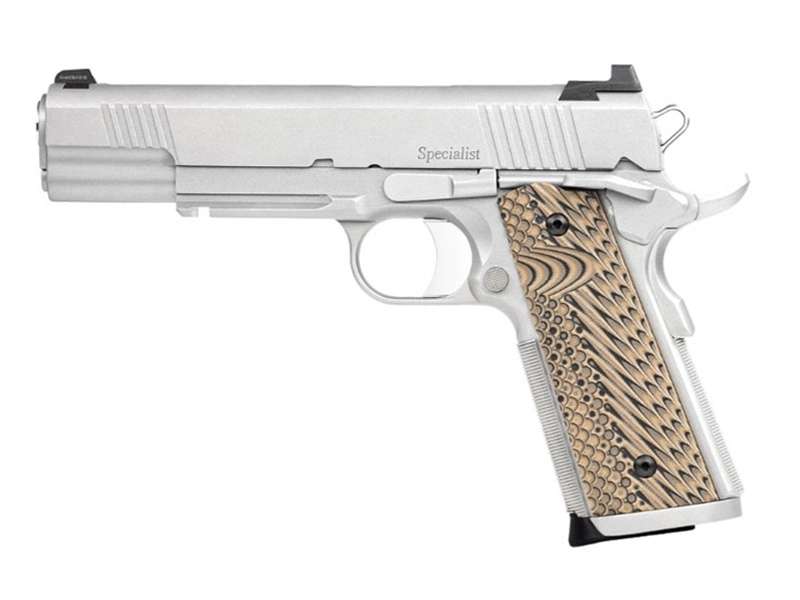The Specialist Stainless was originally developed for police departments who seeked a more reliable and durable 1911 pistol. Offered in a full-size model, the Specialist Stainless sports a bead blasted stainless finish and is chambered in .45ACP. Constructed with a forged stainless steel slide, frame with 1913 rail, 25 LPI checkering, ambidextrous thumb safety and G10 VZ Operator II grips round out this package.