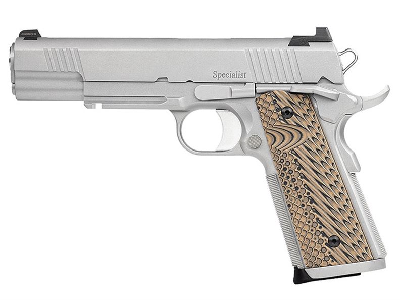 The Specialist Stainless was originally developed for police departments who seeked a more reliable and durable 1911 pistol. Offered in a full-size model, the Specialist Stainless sports a bead blasted stainless finish and is chambered in 9mm. Constructed with a forged stainless steel slide, frame with 1913 rail, 25 LPI checkering, ambidextrous thumb safety and G10 VZ Operator II grips round out this package.