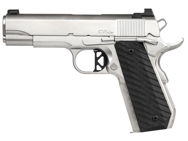 The smaller counterpart to the Valor, the V-Bob is a Commander sized variant with a bobbed mainspring housing. Ideal for concealed carry, it uses a compact 4.25″ match barrel and a set of tapered grips and ambidextrous safeties. The addition of a recessed slide stop allows the use of optional laser grip panels. The V-Bob sports Dan Wesson’s bead blasted stainless finish.