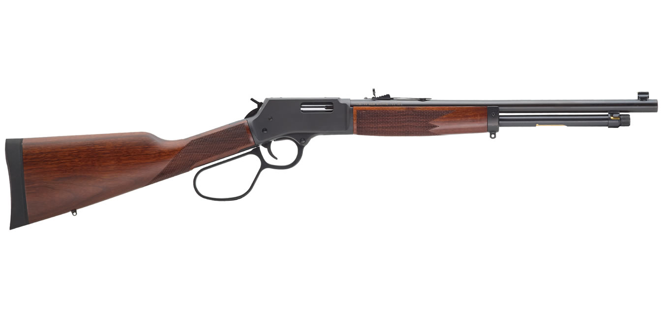 The 2015 success of the Henry Big Boy Steel model led to the introduction of the Big Boy Steel Carbine, chambered in .357 Magnum, with the same blued frame and round barrel, this time in 16.5” length. It comes with Henry’s popular glove-friendly oversized lever, and a seven-round magazine capacity. Nearly a half-pound lighter, and with an overall length of 34”, this is one trim partner to your favorite revolver in any of those three calibers, and it’s a great compact trailgun on its own.
