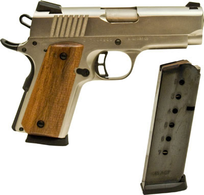 Citadel M1911 features Series 70 Firing System, cast steel frame and forged steel slide, skeletonized hammer and trigger, Novak style sights, lower and flared ejection ports, positive extended beavertail grip safety and 1911 round trigger guard. Lockable hard plastic case included. Supplied with two 6 round magazines.