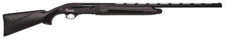 Pointer 12 gauge Standard field shotgun has a sythetic finish. The top of the reveiver is milled with 3/8 inch dovetail for accessory sights. The barrel is nickel chrome moly lined proofed for steel shot and has a fiber optic bead. It is a gas operated cycling system with magazine cut off for single round loading.