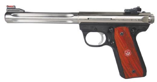 Mark III 22/45 Hunter .22 Long Rifle, 6.88″ Fluted Barrel, Satin Stainless Steel Finish, Fiber Optic Front Sight, Adjustable Rear Sight, 10 Round Mag