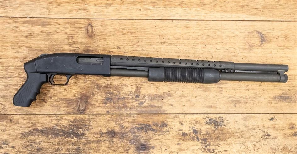 This photo represent the exact firearm for sale a Mossberg Model 500 Police Trade-in Shotgun with pistol grip.