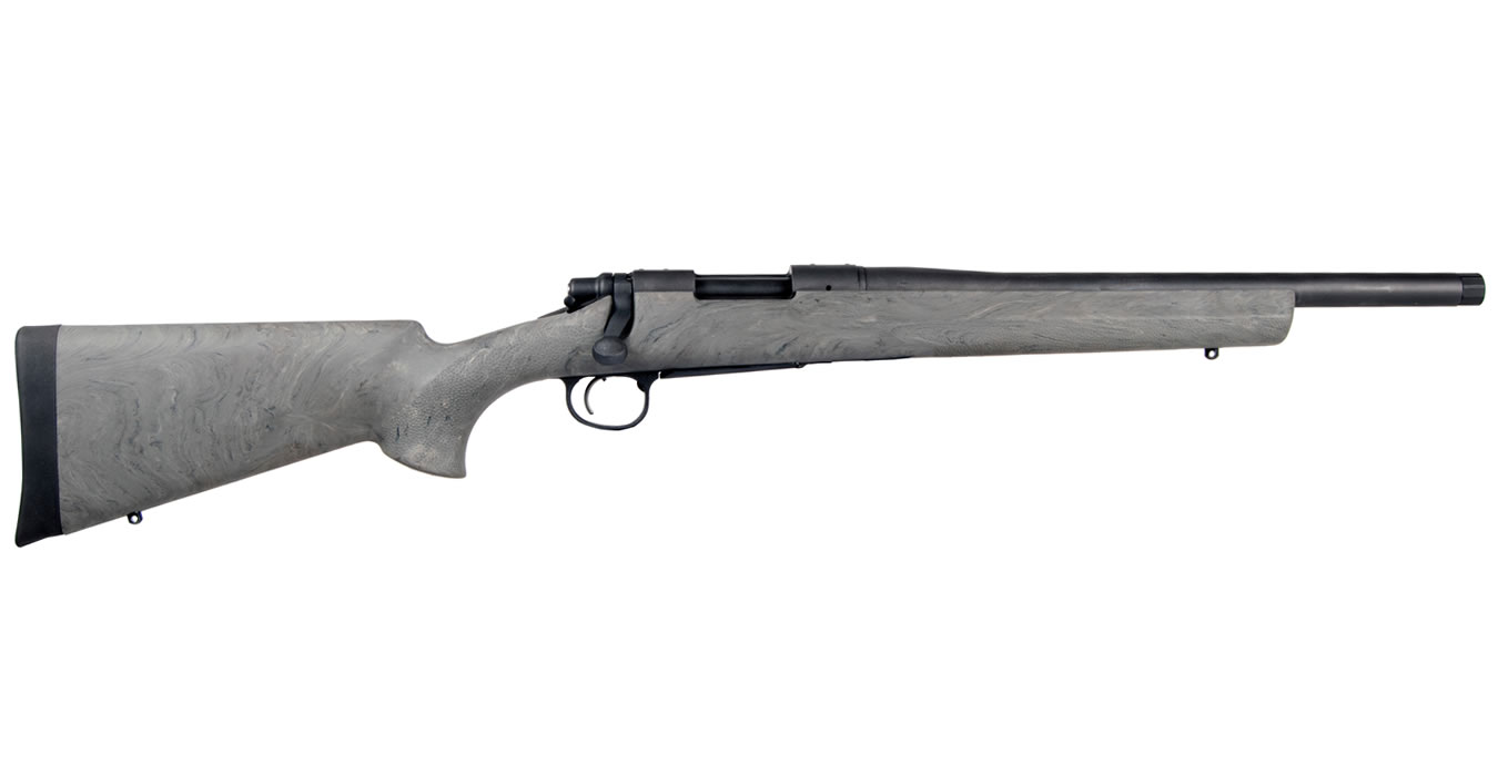 The Model 700 SPS Tactical is a highly maneuverable member of the family. It’s built for tack-driving accuracy with a 16.5″ heavy-contour tactical-style barrel and dual-point pillar bedding in its black synthetic stock. Hogue® overmoldings on the stock facilitate sure handling, and it has a semi-beavertail fore-end for added stability off a rest.