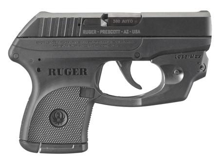RUG LCP With LaserMax Centerfire Laser .380 ACP Caliber 2.75 Inch Barrel Blue Finish 6 Round. Features a LaserMax CenterFire trigger-guard-mounted laser with ambidextrous on/off switch. Laser can be adjusted for both windage and elevation with an Allen wrench (included) and can be removed easily with a Phillips-head screwdriver. Polymer-framed, hammer-fired, double-action only. Comes with flat bottom and finger groove extension magazine buttplates that can be changed to accommodate the shooter’s preference. 1:16 right hand twist. Fixed sights. Alloy steel slide and barrel material.