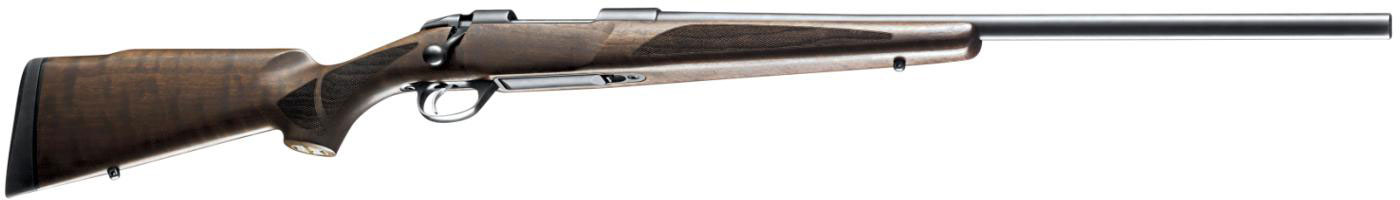 The Sako 85 Varmint is a long-range hunting rifle built to deliver pinpoint accuracy for hunting and target shooting. The heavy, free-floating barrel diminishes vibration and recoil, and makes it easy to zero in and stay on target. Selected walnut used in Varmint rifle stock enchances both comfort and accuracy, and features an extra wide, flat-bottomed beavertail fore-end and more pronounced pistol grip for better bench shooting position.