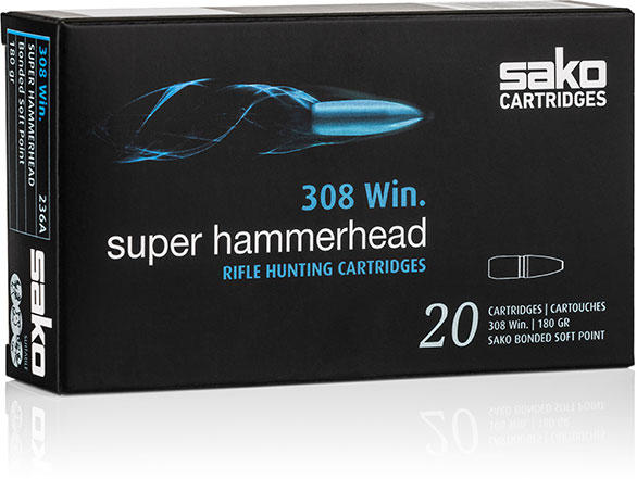 Sako Super Hammerhead Rifle Ammunition C629236ASA10X, 308 Winchester, Bonded Core Boat Tail, 180 GR, 2483 fps,…