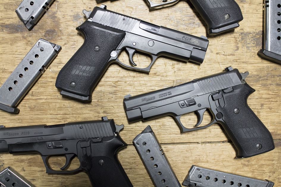 Each Sig Sauer P220 pistol comes with night sights, as well as 3 magazines.