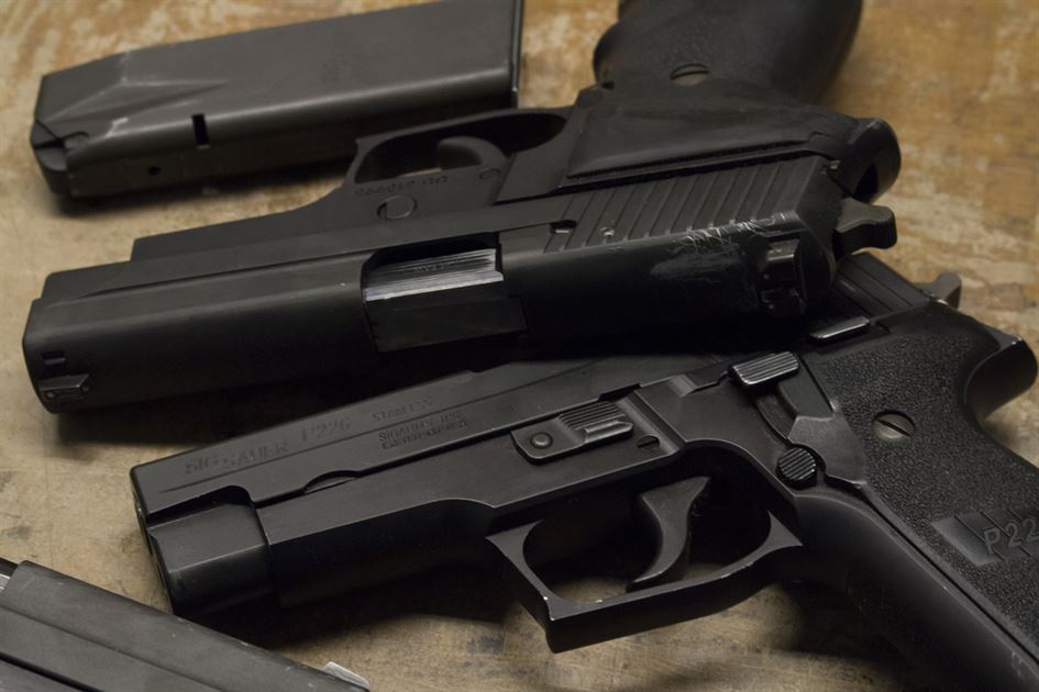 The photo represents the overall condition of these Sig Sauer P226 police trades, all of which are in fair condition.