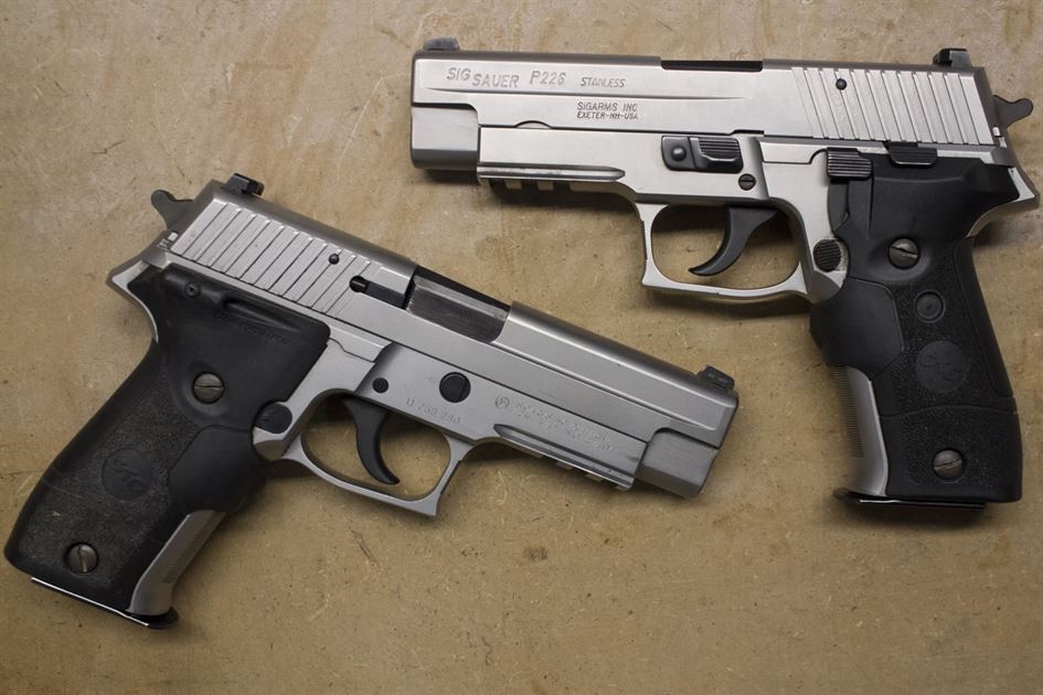 The photo represents the overall condition of these Sig Sauer P226R Stainless police trades, all of which are in good condition.