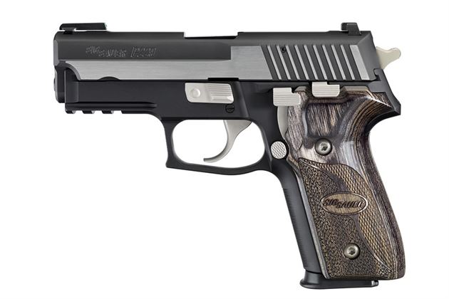 The Equinox® is the balance between day and night.. The P229® Equinox is a compact .40 S&W designed by SIG SAUER® Custom Shop master gunsmiths. It features a two-tone accented Nitron® stainless steel slide with a lightweight black hard-anodized alloy frame. The contrast in color is achieved by the brush polished flats of the slide and nickel accents. The combination of the TRUGLO® Tritium Fiber Optic front sight and the rear SIGLITE® night sight, provides excellent target acquisition, whether shooting day or night. To further enhance the low-light use, the Equinox comes equipped with an accessory rail. To complete the package, the Equinox comes with gray laminated wood grips with a perfect blend of checkering and stippling to enhance not only the form but the function.