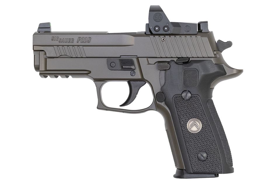 The pistol is finished in Cerakote® Elite Legion gray coating, custom G-10 grips with a Legion medallion, the new SIG SAUER Electro-Optics X-RAY high visibility day/night sights and will ship with three magazines. The P229 in DA/SA include a reduced and contoured Elite beavertail, which allows for a higher grip, but a reduced profile, thus eliminating printing. More aggressive front strap checkering and additional checkering under the trigger guard enhance the grip. An X-Five undercut has been applied to the trigger guard, allowing for a higher grip and greater control. Front cocking serrations provide greater purchase for cycling the action, clearing the firearm, or conducting press checks.