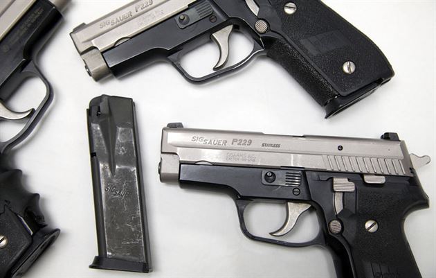 The photos represent the overall condition of these Sig Sauer P229 Stainless police trades, which are in fair condition. Each pistol comes with two 12-round magazines.