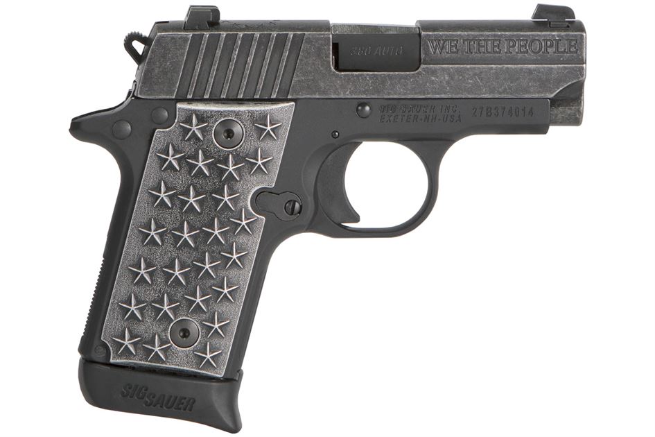 Inspired by a rich patriotic history, this 1911-influenced .380ACP pistol serves as a fitting tribute to the Second Amendment. This uniquely-American pistol features custom aluminum grips adorned with 50 stars (25 per side) that represent each state in the union. A distressed finish on the stainless-steel slide includes patriotic engravings, such as 13 stars atop the slide and “WE THE PEOPLE” on the slide flats. Reacting to many requests from the marketplace for a subcompact SIG SAUER pistol, engineers designed the P238 as a smart looking, small handgun built with the same accuracy and reliability as large frame SIG SAUER pistols. With an overall length of just 5.5 inches a height of 3.9 inches, and weighing just under a pound, the P238 is the ultimate firepower in an all metal frame concealed pistol. The sear and trigger return spring are redesigned to prevent spring over-ride of the ejector during assembly.