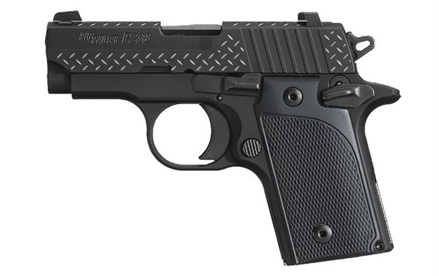 The new Sig Sauer P238 Black Diamond Plate is Nitron®-finished, then engraved, creating a reverse pattern that is as durable as it is striking.