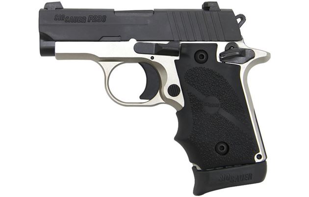 The NBS15 Two-Tone Platinum is the newest addition to Sig Sauer’s line of P238 pistols. Chambered for 380 Auto and featuring a reverse two-tone finish, SIGLITE night sights and a custom one-piece wraparound Hogue black rubber grip, the P238 is the ultimate firepower in an all metal frame concealed handgun. The new, special edition P238 NBS15 comes inside of a lockable hard case, which also houses two magazines – one 7-round extended magazine and one 6-round flush-fit magazine. The wraparound black rubber grip is a comfortable, practical upgrade, featuring finger grooves and a stipled cobblestone surface for improved traction.