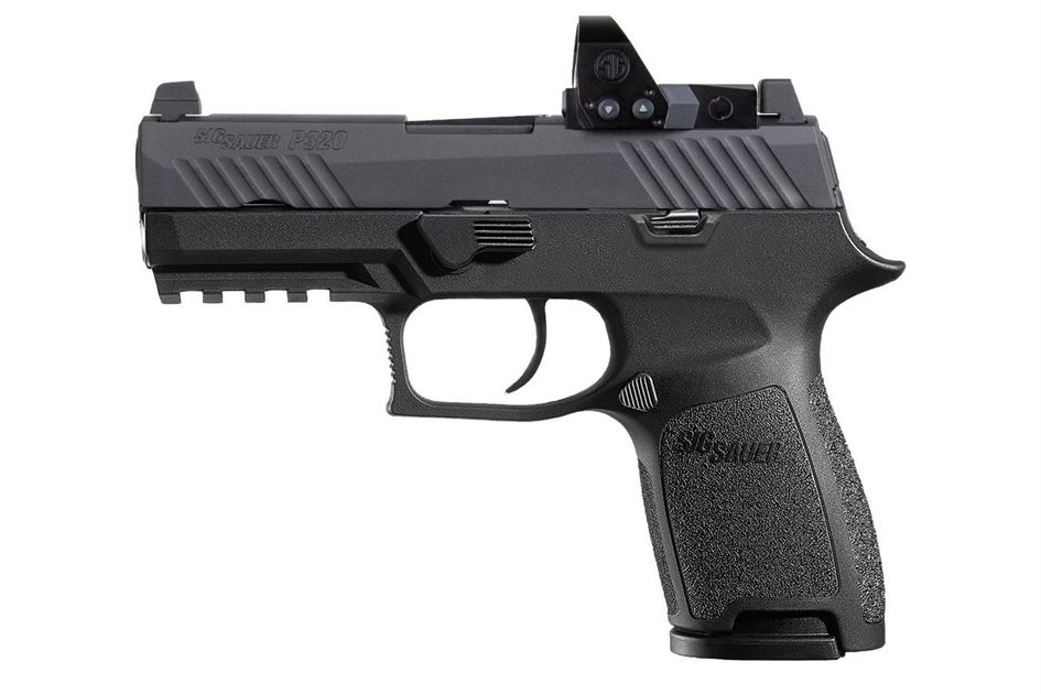The P320 RXP Compact offers a smooth, crisp trigger to make any shooter more accurate, an intuitive, 3-point takedown and unmatched modularity to fit any shooter and any situation. Its compact frame is ideal for target shooting and home defense, as well as many concealed carry scenarios. This modular, striker-fired pistol features a full-size grip, compact slide, and contrast Suppressor Height Sights along with a factory mounted 6MOA ROMEO1 PRO. Available in 9mm. Safety features include a striker safety, disconnect safety.