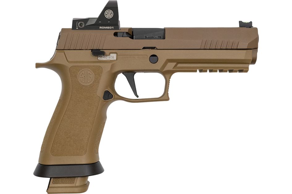 This special edition P320 X-Five features a Coyote Tan finish. The Optics Ready X-Five also features a Flat X-Series Trigger, Detachable Extended Magwell, and a Dawson Precision Fiber Optic Front Sight with Adjustable rear.