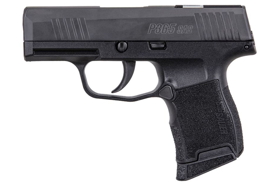 With the assistance of fiber optics during the day and tritium in low light, the user can now obtain a crystal clear high-visibility bullseye sight picture at real-word engagement distances faster than ever before. The flush slide catch and takedown levers ensure absolute smoothness and zero snag risk. After shooting the P365SAS, sights will never look the same.