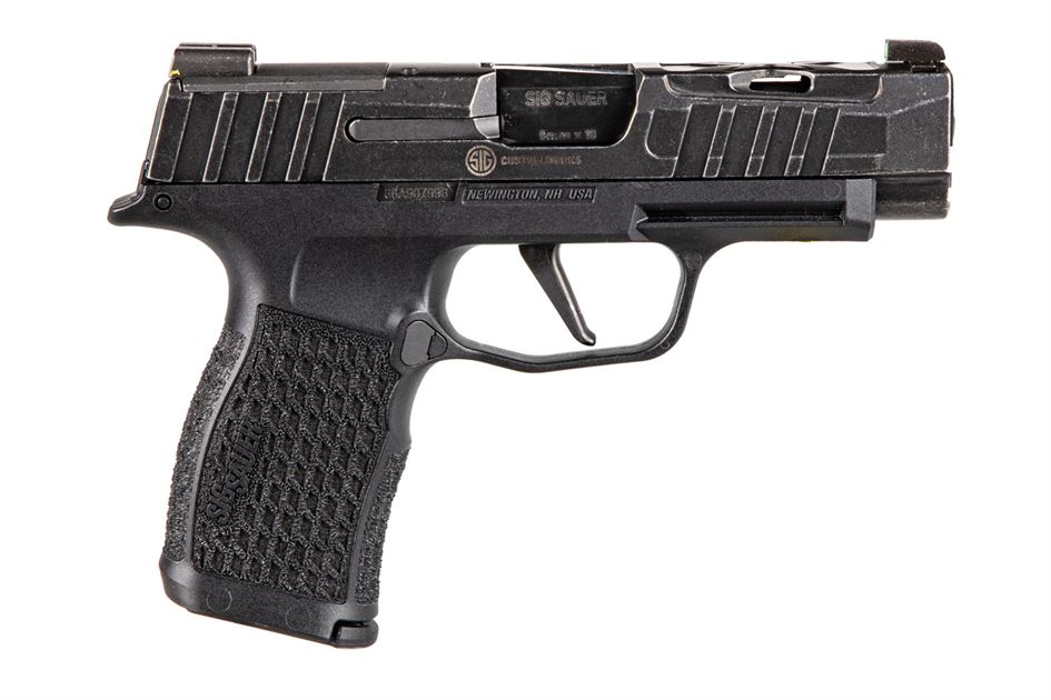 The latest creation from SIG Custom Works brings a whole new level of customized style to our two most popular pistols. The P320 XCompact Spectre and P365XL Spectre grip modules are laser engraved at SIG SAUER with a custom pattern on all four sides delivering an aggressive yet stylish texture for a stronger, more controlled grip. Both slides were designed with the exclusive Spectre X-pattern engraving, lightning cuts, and graduated serrations with a distressed finish to ensure every pistol is truly unique. These exclusive enhancements paired with XSeries features such as flat triggers, XRay3 Day/Night sights, and optic-ready slide cuts make the P320XCompact Spectre and P65XL Spectre stand above the rest for the ultimate custom CCW pistol.