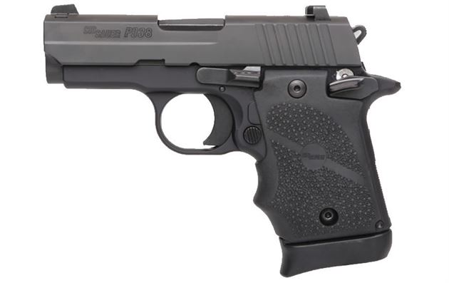 The Sig Sauer P938 is built on an anodized alloy beavertail style frame with Black Rubber Wrap-Around Grips for comfort and a secure hold during rapid-fire usage. The P938 has a single-action-only trigger, coupled with full-size SIGLITE® Night Sights, which makes the P938 handle like a much larger pistol, yet is still easy to carry concealed.
