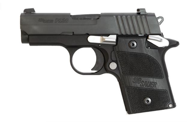 The Sig Sauer P938 offers the ballistic advantage of the 9mm cartridge in a platform similar in size to the best-selling P238 pistol. A single-action-only trigger, coupled with full-size SIGLITE® Night Sights makes the P938 handle like a much larger pistol, yet is still easy to carry concealed.