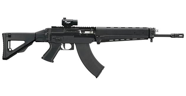 The new Sig Sauer 556 Russian is chambered for the widely used 7.62 x 39mm caliber. Using AK-type magazines, the shooter now has a more potent round for small to medium game. The SIG556R features a Swiss folding stock, and an M1913 rail for accessory attachment. The 16” barrel features four-groove rifling and a twist rate of 1:9.5”. The SIG556R measures 35.875” but can fold to 26”, making it ideal for situations where maximum maneuverability is required. For Special Forces requiring an accurate, more potent rifle, chambered in 7.62x39mm, the SIG 556R sets a new standard for dependable operation and function.