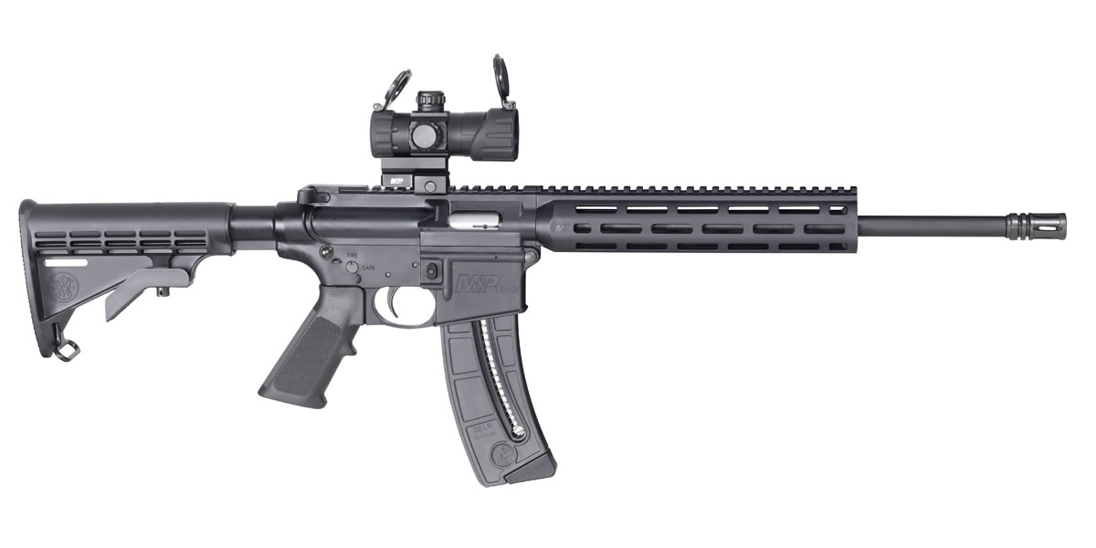 The M&P15-22 Sport rifle is now available in an optics ready configuration complete with a factory mounted red-green dot optic. With a variable intensity dot in both red and green, and adjustable for windage and elevation, the included optic allows for a quick and easy sighting solution.