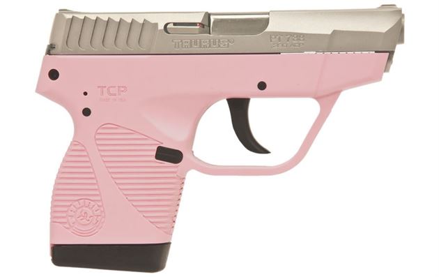 The Pink PT-738 Taurus Compact Pistol (TCP) is the lightest firearm Taurus has ever created. The 10.2-ounce Pink 738 TCP is not only the lightest semi-auto in the Taurus line; it’s lighter than any of their small frame revolvers too. The Taurus 738 TCP is made in the USA and offers 6 1 shots of .380 ACP, a durable polymer frame and low-profile fixed sights.