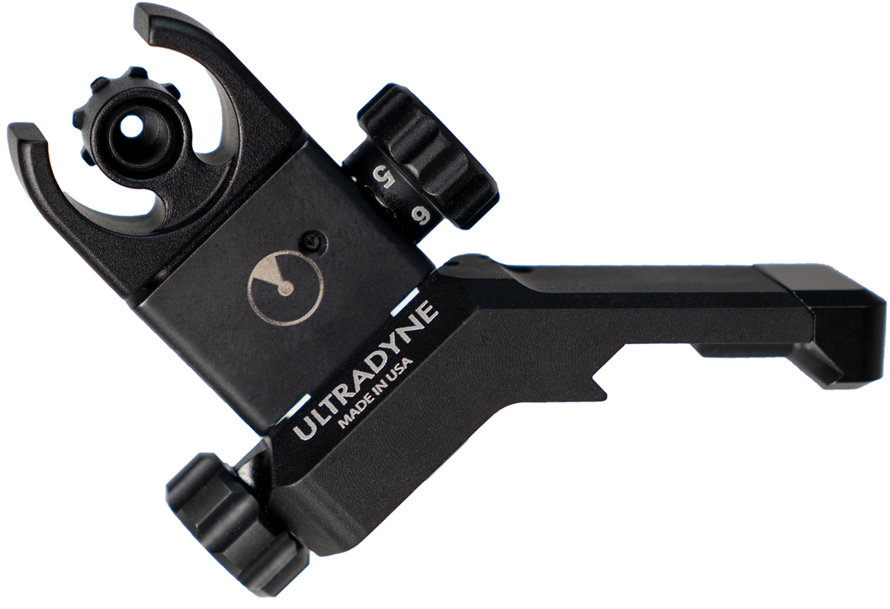 The C4 OFFSET FOLDING REAR SIGHT from Ultradyne brings our outstanding dual aperture sight system to you in a 45 degree offset mount along with a ballistically calibrated elevation system. The C4 Offset Rear Sight utilizes Ultradyne’s exclusive circle-within-circle sight picture technology which enhances accuracy and increases the speed of target acquisition. It is an integral part of the C4 Sight System that creates a more intuitive sight picture, allows the shooter to see the target not cover it while reducing the parallax effect which makes accuracy less dependent on precise sight alignment. Run your competitions knowing that you have the best iron sights on the market backing you up!