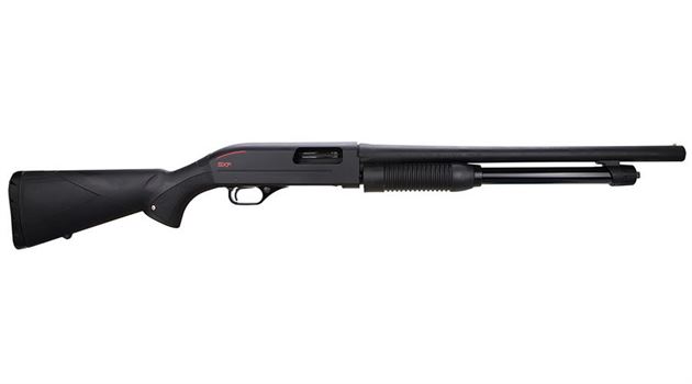 Easy to pack and carry, handling buckshot or rifled slugs efficiently through the fully chrome plated, 18” fixed cylinder choked barrel (no constriction) for wide patterning. This open choke is also very accurate when using Foster-type slugs. It also has non-glare metal surfaces with a tough composite stock and forearm. Additional features include a five-shot magazine (plus one in the chamber), and a positive, deeply grooved forearm for control and stability.